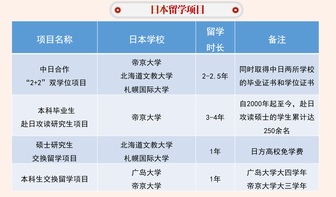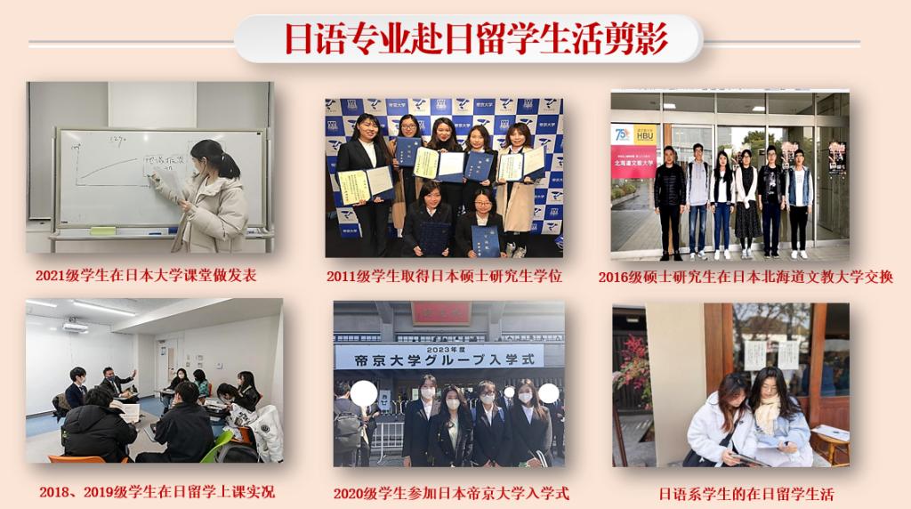 围绕人才培养目标推进和开展国际化建设的国际交流,结合“日语+经贸”的特色,与日本高校在本科生中开展“2+2”、“3+1”、研究生中实行“2+1”留学项目,实现经贸日语人才的中日联合培养。