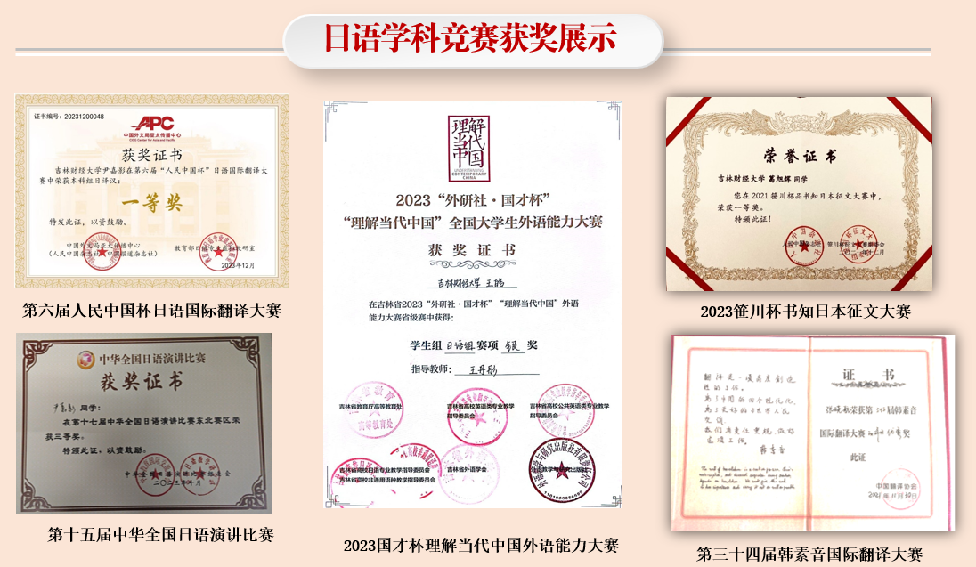 得益于努力的教师团队和崭新的硬件设施,日语专业学生语言水平持续提高,仅近3年获国家级竞赛获奖20余项,省级竞赛获奖60余项。其中,我系有两名学生在第一届国才杯理解当代日语组比赛中取得了全省前10名的好成绩。