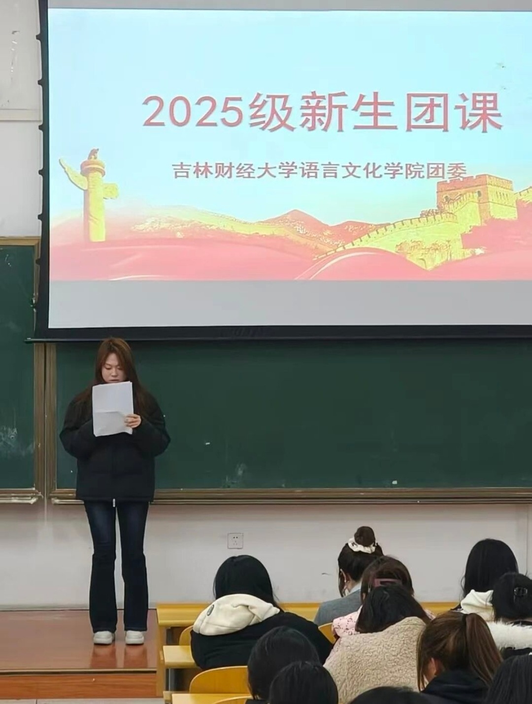为了帮助青年学生们更加了解中国共产主义青年团的性质、入团条件、组织象征和标志以及团员证等知识,语言文化学院于2025年10月29日晚六点在一教1405开展本学期第一次主题团课活动。此次学习不仅帮助学生们树立正确的价值观与理想信念,同时提升社会责任感和综合实践能力,是学生思想成长和能力发展的重要助力。本次团课主讲人是语言文化学院团委组织部干事陈梦瑶,学习人员为语言文化学院大一学生。