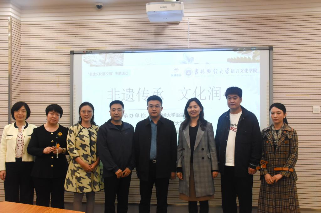 9月24日,我院联合民盟吉林财经大学委员会、民盟文创工作组开展“非遗传承 文化润心”非遗文化进校园主题活动,学校党委宣传部、党委统战部部长李栋栋,吉林研程文旅产业发展集团有限公司董事长庞明,爱未来文创集团CEO艾立兵,爱未来文创集团副总经理王丹,吉林省博古艺人文化产业公司讲师谷立波出席此次活动。