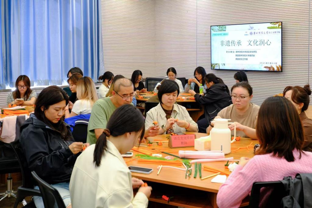 活动现场,吉林省博古艺人文化产业公司讲师谷立波为师生传授长春本地流传已久的非遗技艺:以彩绳、棉线为原料,模仿自然万物形态,师生共同编制的柿子花、百合花蕴含“柿柿如意”“百年好合”的吉祥寓意,既是节庆时的装饰佳品,也是亲友间传递祝福的手作信物。