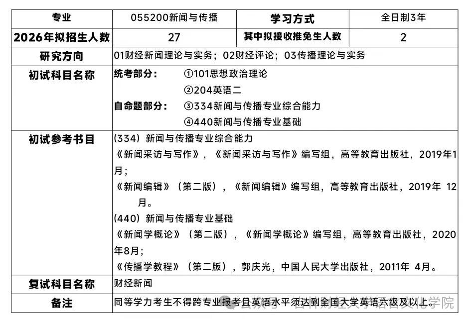 ① 新闻与传播专业(专硕,代码055200,授新闻与传播硕士学位)
