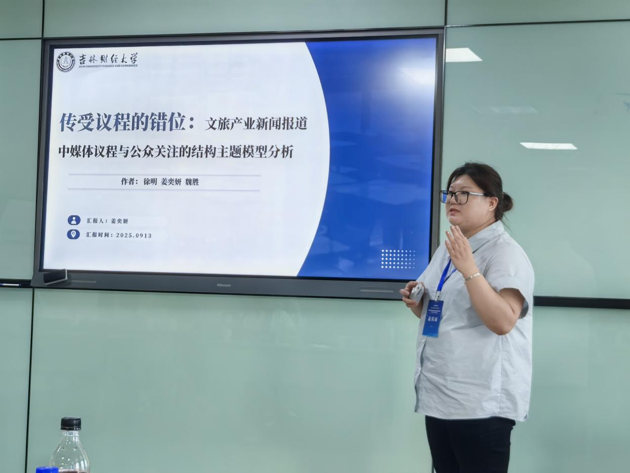 姜奕妍同学撰写的论文《传授议程的错位:文旅产业新闻报道中媒体议程与公众关注的结构主题模型分析》被会议全文收录,并在第二十分论坛(旅游大数据挖掘)进行宣讲,与参会代表进行了充分的沟通交流。