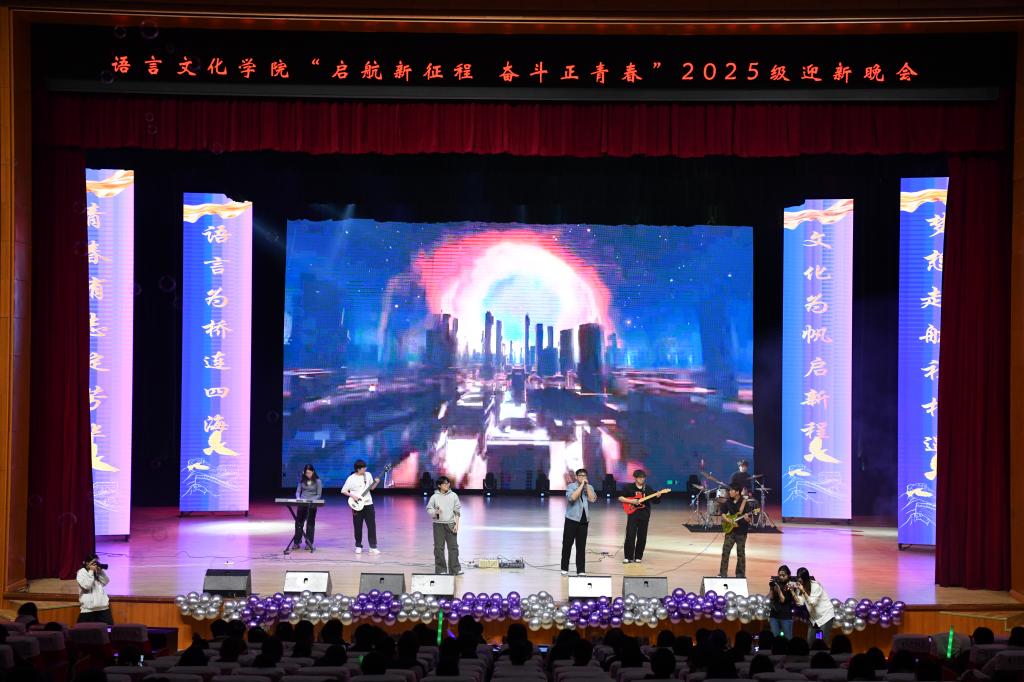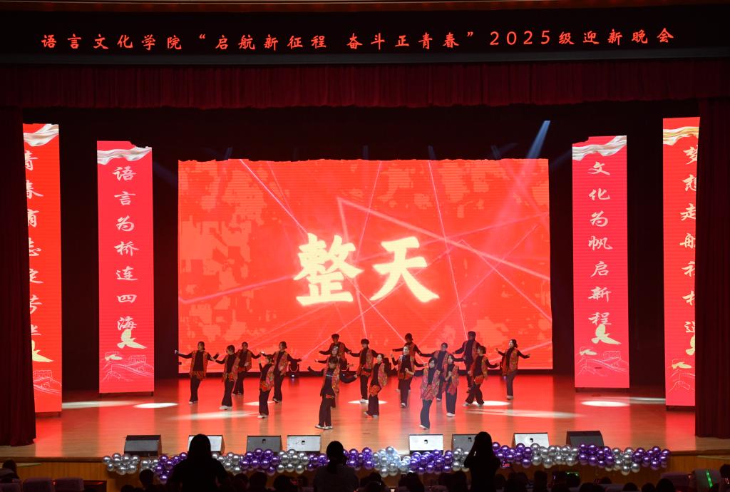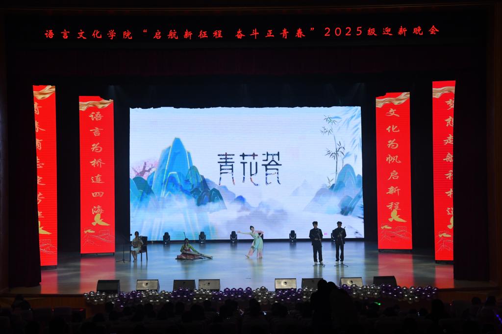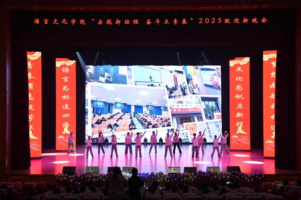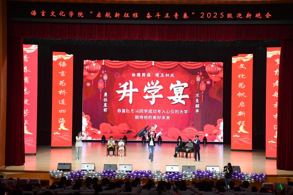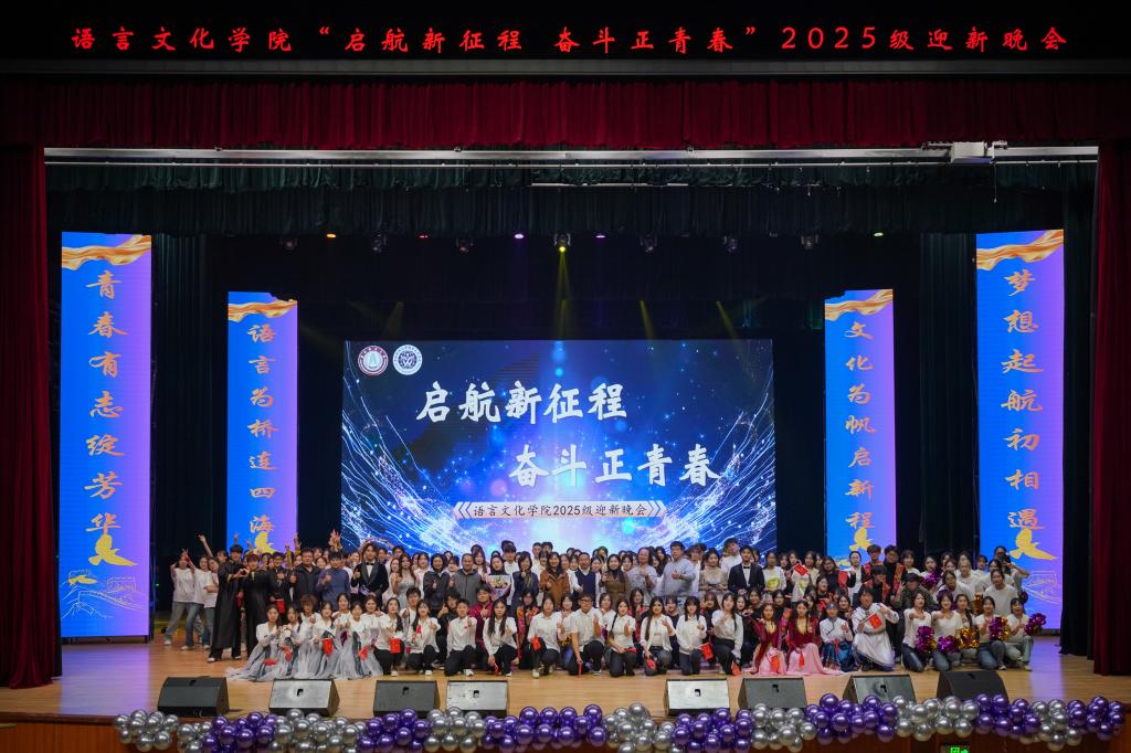 2025年11月12日,作为新成立学院的首次年度盛会,语言文化学院在多功能学术中心举办“启航新征程 奋斗正青春”2025年迎新晚会暨新生文艺思政课。晚会紧扣“文艺思政课”定位,将实景演出与互动体验深度融合,既彰显“外语+财经+传播”的特色底蕴,又诠释“守正创新、聚力育人”的精神风貌,为全体新生呈上一堂兼具思想深度、文化韵味与青春活力的成长必修课。