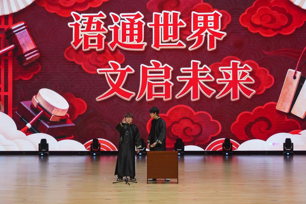 英语2549班与日语2550班联合带来的相声《唇舌风雅,快板清音》,将专业语言特色与曲艺形式结合,完美诠释“语言+传播”的融合优势,彰显学院打破学科边界的创造力。
