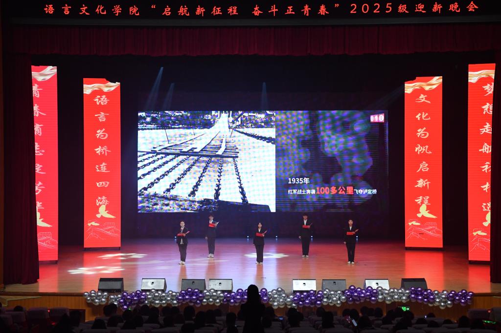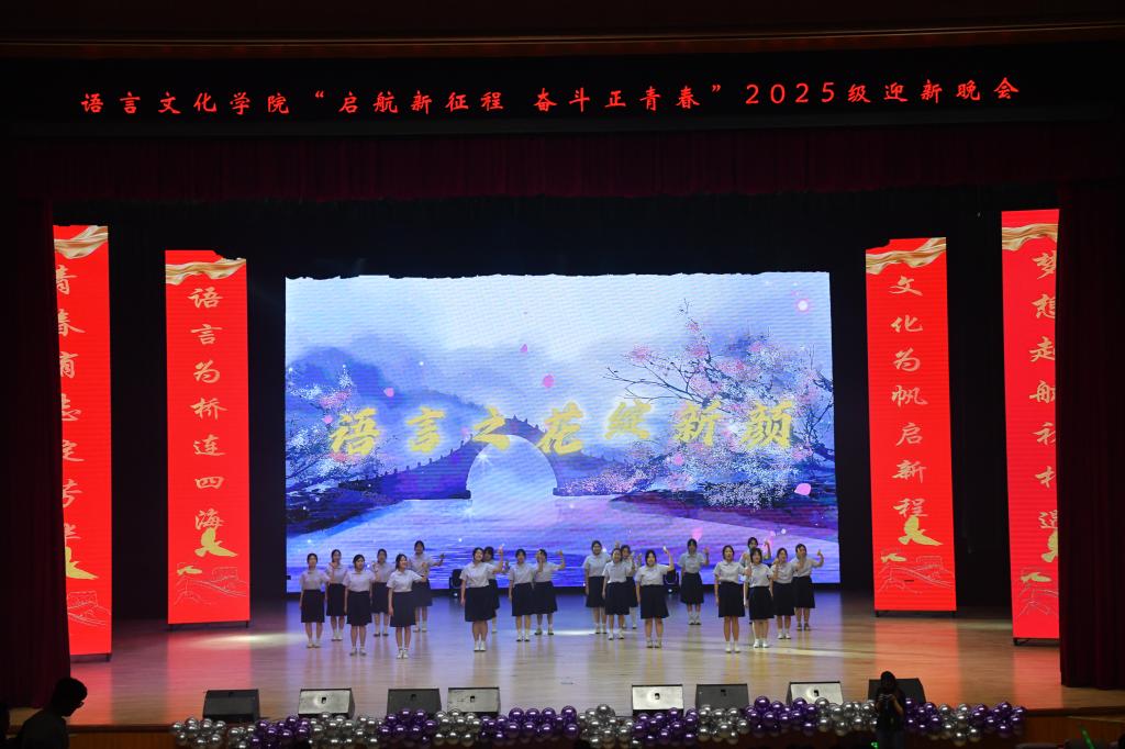 美育铸魂兴文脉,党建引领启新程。语言文化学院坚持“四个融入、五育并举”理念,深化“三全育人”改革,构建协同育人体系,形成了思政引领、美育赋能、实践提质的全面育人格局。本次迎新晚会既是一场艺术盛宴,更是一堂沉浸式文艺思政课,展现了学院“思政引领有高度、文化传承有深度、创新发展有力度”的精神风貌。未来,学院将继续以语言为桥、文化为媒,引导学子成长为新时代文明传播者,在新征程上书写属于语言文化学院的奋进篇章。