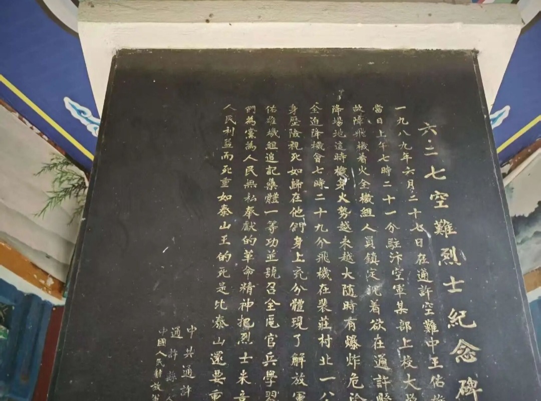 六角亭下,毛泽东主席为通许英勇牺牲的烈士们题词“无上光荣”,金色的大字让我们回想起抗战时期浴血奋战的烽火岁月。我们走到西侧的六角亭中,里面是六·二七空难烈士纪念碑,虽然碑文斑驳,但仍熠熠生辉,彰显着烈士们的伟大奉献。