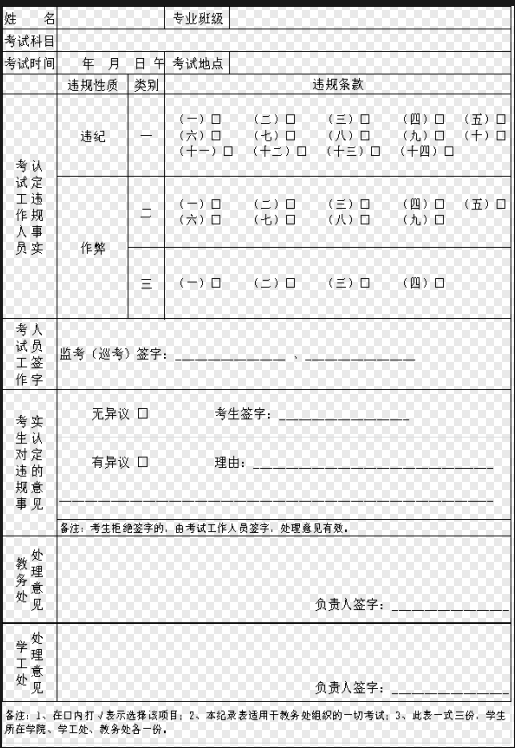 违规记录单作为认定考生违规事实的依据,必须由2名以上监考人或者巡视人签字确认。