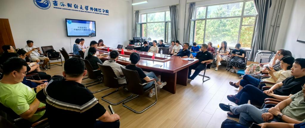 学院拥有一支结构合理、素养卓越的师资队伍,现有教职员工115人,其中专任教师100人,教辅行政15人;教授6人,副教授35人,高级职称占比41%;专业教育教学教师团队博士化率达64%;学历背景涵盖外国语言文学、中国语言文学、新闻传播学、经济与管理、历史文化、教育学等多个专业领域;拥有吉林省教学名师、省级优秀教师和吉林省各层次人才,以及一批具有海外留学、访学和讲学经历的国际化教师(占比70%);近三年承担省部级教科研项目64项,发表各级别学术论文56篇,出版专著、教材及译著15部。形成了一支年龄、学历、职称结构比较合理,教学、科研水平较强的师资队伍。